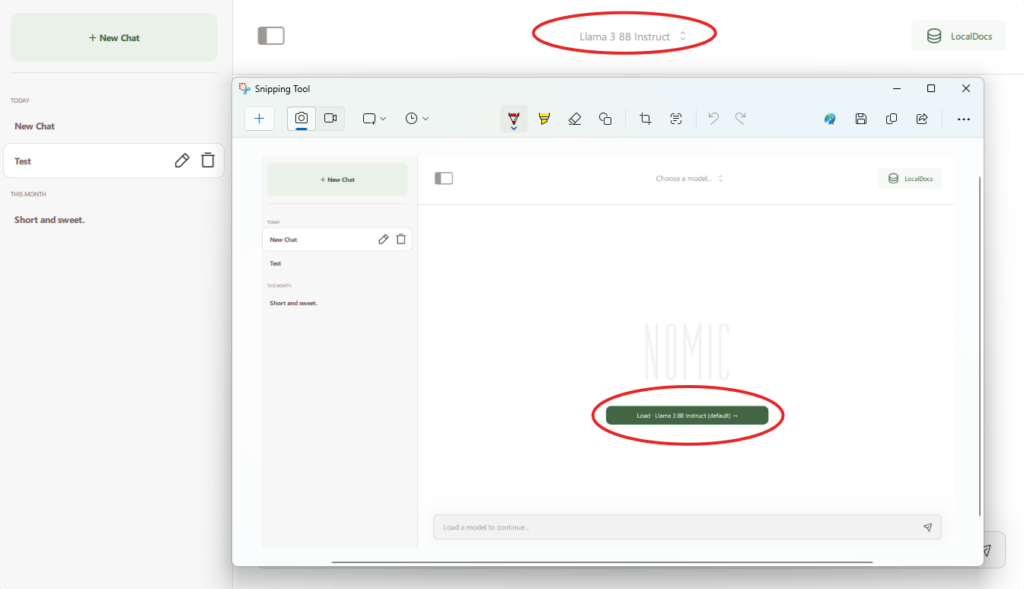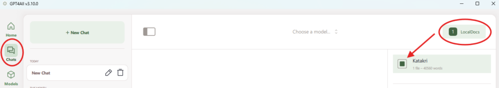 Now that the localdoc is set-up you just need to add it to the chat and you’re good to go! In the “Chats” tab, simply click on “LocalDocs” on the top right and select the localdoc you just created.